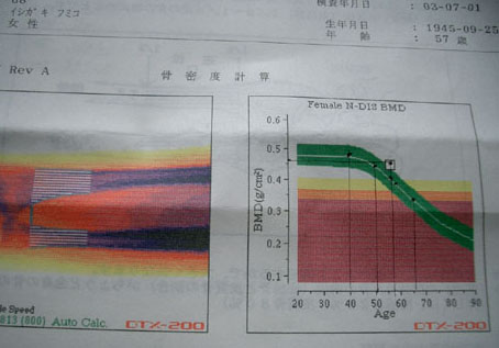 下の写真は、今月始めに骨密度検査を行い、今日、結果が届きました。