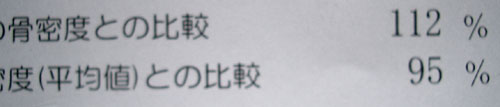下の写真はHP作者の今の状況。同年齢との比較112%最大骨密度(平均値)との比較95% 骨粗しょう症予防に心掛ければ、