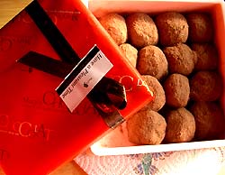 数が少ないせいか、白鳥と人間が心から愛情で結ばれているように見えますよね〜♪ 心温まる思いと同時に、お互い癒されているんだろうなぁ〜と、羨ましく思いました。 我が町にも来てくれないかなぁ〜(^-^;) NO.253 歯の漂白? (06/2/7)先日、歯の定期健診に行った時、チョッと気になる歯のことを尋ねてみました(^-^;)。「先生、一本だけ歯が茶色に変色してしまって、もう何年も経っていますが、何故ですか? 白くする方法ってありますか〜?」原因は神経を抜いてあるため死んでいるから、変色したそうです。 歯を白くするには、脱色する薬があるとかで、歯の裏に穴をあけ脱色剤を詰め1週間位で薬を取り替えるそうです。2〜4回で白く漂白されるそうですが、もう何年も変色していたので、もっと早く知っていれば・・・と後悔(^-^;)。 お医者さんもPR不足のようで、注文した薬がたくさん余り、期限切れで捨てていると話されていました。 今回は、私のために薬を取り寄せて下さったので、サークルの友達にもPRしようと思っています(^_-)-☆ ![]() 今現在、1本だけこんなに茶色ですが、今日、第一回目の治療をして来ました♪一ヵ月後は如何に〜〜??(治療前、治療後も公表したいと思います~=~;) 気になる方には、朗報だと思いますので・・(^_-)-☆ NO.254 猛吹雪でもフラ練習♪ (06/2/9)久しぶりに昨日は春の陽気だったのも束の間、今日は朝から荒れ狂った猛吹雪き! 吹き溜まりの所は30センチ以上くらいの積雪になったりしています(^-^;) 神様からのプレゼント?と除雪に精出す毎日ですが、少しも痩せないのは何故?(~=~;)今月末の日曜日に、生涯学習の発表会があります♪ ![]() 先月から、我がフラダンスサークルは、先生が来ない日でも毎週一回は自習練習という形で励んでいます。 今日も猛吹雪の中、皆集まって来てくれました♪ 休憩時間のおやつとお喋りが楽しみなのかも?(^_-)-☆ (折角の運動が水の泡になりますが、心身共に健康になれるキーポイントです!^-^;) NO.255 バレンタインチョコ♪ (06/2/14)バレンタインデーには、女性から男性に愛の告白ができるという何とも控えめな女性の気持ですよね〜。 時代は変わっても、控えめな女心は忘れたくありませんが、現代の女性の現実はどうなんでしょうか〜?(^_-)-☆トリノオリンピックが始まりましたが、毎日寂しい結果ばかりですね。 寝不足の疲れがドッと押し寄せてきそう〜(~=~;) でも、今朝は感動的なライブも観られたりして、込み上げてくるものが・・・(^-^;)。 やはりライブの醍醐味ですね(^_-)-☆ 今年もバレンタインチョコを手作りしてみました♪ この年になって、愛の告白でも何でもないですが、先日のTV「伊東家の食卓」の“裏ワザCooking”で『裏ワザ・やわらかトリュフ』が放映されていました。 カンタン!低カロリー!! トリュフなら生クリームを使用するので、凄く美味しいですがカロリーが気になりますよね。 これはトーフを利用するのでとっても健康的!!