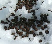 今朝、挑戦してみました(^_-)-☆ 本当に簡単で、味もトーフとは思えないトリュフでした。 生クリーム使用とは味的には違いますが、これこそ健康を気遣った愛の告白???(^_-)-☆ 画像は頂き物のチョコの空き箱に入れてみました・・・(^-^;) チョコの健康効果は既に有名ですが、昨年のバレンタインチョコも見て頂けますか? お願いします(^-^;) NO.256 三寒四温の中で♪ (06/2/18)横浜方面からフキノトウが顔出したとの便りがあり、春が近づいているようですね〜♪ こちらもすっかり春めいて ウキウキしていたら、何と昨日は一日中猛吹雪となり、朝より日中の方の気温が低くなり、真冬に逆戻りです(~=~;)こんな日は、温泉が一番! 近場にある地元温泉は、いつもお世話になっています♪ それに地元以外の人との交流もあったりして楽しさ2倍(^_-)-☆ (昨日は、乳ガンで右乳が無い明るいオバサンと、話に花が満開〜^-^;) ![]() ![]() この画像は吹雪の中の露天風呂でしたので、誰も入っていませんでしたが、私は必ず入ります!(^_-)-☆ お湯は温かいし、外は寒いので顔が冷たい! このギャップがたまらなく気持いいのです〜(^_-)-☆ もし機会があれば、一度体験して下さいませ〜♪ だだし、高血圧の方には、絶対お勧めできません!(^_-)-☆ NO.257 久しぶりの青空♪ (06/2/20)久しぶりに鳥海山が頂上まで顔を出しました♪いつから見てないのか思い出せないくらい見ていません(~=~;) 本当に久しぶりに逢えた嬉しさに、思わず台所からの撮影です(^-^;) (撮影時間:AM 8:40 頃) ![]() ドライブがてら鳥海山を眺めながら、象潟の道の駅まで海産物を求めて出発! ここは矢島町にある私の好きなポイントです。恐竜の数が雪で壊れて年々減ってしまいましたが、それでも童心に帰ります(^_-)-☆ ![]() にかほ市の釜が台付近の鳥海山です。 走っている車中からの撮影です。 鳥海山の形が場所によって随分違いますが、皆さん自分が住んでいる場所から見える鳥海山が一番!って話されるんですよね〜(^_-)-☆ ![]() 我が家から見ると南西に見える鳥海山がいちばん富士山に似て女性っぽく優雅ですが、象潟に行くとだんだん東に見えてきて荒々しい男っぽい山に見えます(^_-)-☆ もちろん、両方とも大好きです!(^-^;) (以上、地元情報でした〜♪) NO.258 あっ、春が〜\(^-^)/ (06/2/24)このところの暖かさで雪解けに拍車がかかり、除雪していた我が家の庭も芝生が見えて来ました♪。 でも玄関前の道路側は、雪寄せ積雪などで3メートル近いところもあり、まるで雪の回廊みたい・・・(^-^;)。ところで今朝の女子フィギュア・フリーは、ライブ放送を見ながら本当に感動しました! もちろん期待はしていましたが、荒川静香さんの金メダルはアジア初めてとのこと! トリノにおいて日本初のメダルで、いっきに春が来ましたね〜♪\(^-^)/(これはもう国民栄誉賞かも?(^_-)-☆) 今日のお昼頃、1本の歯の脱色治療の帰宅途中に、もうひとつの春を見つけました! 何と雪解けの崖のところからフキノトウが7〜8個顔を出していたのです♪ 春を見つけた興奮で、思わずシャッターを押してしまいました〜(^_-)-☆ 早速採取して、強烈な春の香りにルンルン♪ ![]() ![]() 今夜はもちろん天ぷら予定です(^_-)-☆ マヨネーズを適当に入れて溶いた得意のウラワザの衣を使えば誰でもプロ級の天ぷらが出来ますよ(^_-)-☆ お試しくださいませ〜♪ NO.259 飛び入り参加♪ (06/2/25)良いお天気が続き、今日も青空に鳥海山が姿を現しとても良い気分です♪ 地元・猟友会の方から、「カモシカの調査を25日やるから行ってみっか〜?」 とのお誘いを受けていたので、喜んで参加して来ました(直根地区の川端の山)♪。 1年ぶりの雪山歩きは、普段の運動不足解消と好奇心を満たしてくれる筈?(^_-)-☆ サァ〜、結果は如何に〜? カモシカに逢えるかなぁ〜? ![]() ![]() 左の画像では、カモシカ(左)とリス(右)の足跡が並んでいました。 上の画像は、木の傍のあちこちにあったカモシカの糞です。 どんぐりのような形でチョコ色です(^-^;) 他にも野ウサギやキツネなどの足跡はあれど、やはり姿って見えなかったです。 う〜〜ん、残念! 猟友会の方達は5班に分かれ、実質3時間足らずの調査でしたが、私は慣れないカンジキ履いての山歩きなので、明日は太ももの筋肉痛になるかも? 大丈夫かなぁ〜〜(^-^;) NO.260 金メダリストの帰国♪ (06/3/1)昨夜(28日)の夜 胸に金メダルをかけた“クール・ビューティー静香さん”の記者会見を見て、またまた彼女の人間性や教養の高さなどを 感じ、感動してしまいました。 相変わらずクールではしゃぐことなく、感謝の言葉を実に謙虚な態度で話されていましたよね。 心身共に美くしく優しさ溢れる彼女に、“本当に有難う〜!” と心から叫びたいです♪それから静香さんの人気を決定的にしたトレードマークのイナバウアーは、まさに感動ものですね〜。 「採点につながらなくても記憶に残る演技をしたかった」 と話されていましたが、100パーセント記憶から離れない演技だと思います♪ もう3月ですね〜