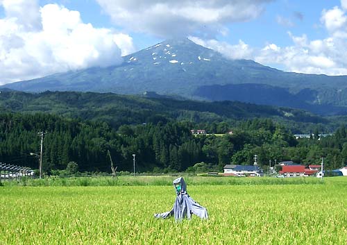 NO.320 ブナの実が不作で、熊が・・・ (06/9/3)今年はブナ実が不作とかで、農家の畑や家の中にまで熊が現れたというニュースが多いですね〜(@@;)。 そのせいかどうか?、今年の夏は夏山歩きがめっきり少なくなりました(^-^;)それでも今日のような青空を眺めていると、収穫時期のサルナシを採取した経験があるので、今頃はどんな様子なのか、果たして実はついているのかどうか急に見たくなりました♪ 現地に到着し、少し山歩きすると目的のサルナシにご対面♪ 「うわ〜〜、サルナシの実があった〜!」でも、まだ小さいです。 収穫は1ヶ月後ですがこんな感じで収穫できるかしら?(^_-)-☆ 隣は、傍で咲いていた萩の花♪ もう咲き終わりですね〜。 ![]() ![]() (撮影場所:沢内 撮影日時 3日午前10時過ぎ) ![]() 途中で見かけた、のどかな案山子(かかし)さん♪ (撮影場所:伏見 撮影日時 3日午前9時過ぎ頃) こんな可愛い案山子さんですと、余計にスズメがやってくるかも?(^_-)-☆ ![]() こちらの案山子さんは、未だに雪が残る鳥海山をバックに撮ってみました♪ チョッと寂しく感じる案山子さんでしたが・・・(^_-)-☆ 稲穂もだいぶ黄金に色つき、今月中頃から秋田も収穫に入ります♪ (撮影場所:芦ヶ渕 撮影日時 3日午前9時半頃) NO.321 リンドウとサルスベリがあった景色♪ (06/9/9)残雪の鳥海山は、3合目から見ると良く見えます♪ 5合目まで行ってしまうと雪はもっと下の方にあるので少ししか見えないのです。(撮影場所:鳥海山3合目 撮影日時 6日午前11時10分頃)![]() ![]() 鳥海山5合目(祓川の湿地帯)に咲いていたリンドウです♪ 他にはウメバチソウとかイワイチョウとか名前の忘れた赤い花も咲いていました(^-^;) (撮影場所:鳥海山5合目 撮影日時 6日午前9時40分頃) ![]() 鳴子温泉に咲いていたサルスベリの花です。 雨に煙る遠くの山が幻想的・・・♪ (撮影場所:鳴子 撮影日時 7日午前6時頃) ![]() 雨に煙る鳴子のこけし・・・(^-^;) (撮影日時 7日午前10時頃) NO.322 ボランティアでフラダンス♪ (06/9/11)町の保健福祉課で行っている 「いきいき温泉活用」 という集まりがあるらしく、その中で“ フラダンスショーと一緒に踊ってフラ体験 ”という企画が今日の午後1時30分〜3時まで地元温泉「鳥海荘」でと、依頼されていました(^-^;) 元々は町の企画の生涯学習で習っていたのですから、町の人に喜んで頂けるならと謝礼は辞退、都合のつく仲間七人で、ボランティア楽しんで来ました(^_-)-☆ 65歳以上の集まり30名の前で、得意のフラを5曲踊ったり、簡単な「月の夜は」の曲を