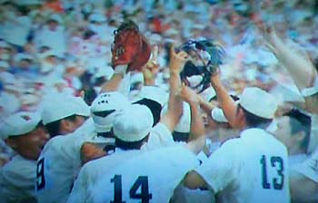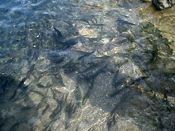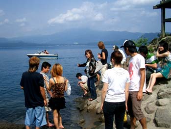 NO.311 お盆はお墓参りだけど・・・(^-^;) (06/8/13)我家のお墓は東京・町田市に住んでいた時に建てたので、すっかり遠くなってしまいました(~=~;)それでもせめて年一回だけは、毎年必ず秋にお参りすることにしてます。 息子夫婦や親族にも逢えるし、懐かしい友人にも逢ったりするので、楽しみの一つです♪ 突然今朝、田沢湖・乳頭温泉に行こうという話になり、好みの温泉は色々あるなか、今日は黒湯に決定♪ 泉質は硫黄、色は乳白色、そして混浴露天風呂〜〜(^-^;) ![]() ![]() 和やかな雰囲気が大好きな我が夫婦は、愛知県から来られた人とか、県内の人などと、楽しいひとときを過ごして来ました♪ 秋田に引っ越して来た理由の一つに、近場に温泉がたくさんあるからかも?(^_-)-☆ ![]() ![]() ↑は田沢湖伝説の竜子姫の銅像バックに記念撮影している人達♪ 見えない左端にはカメラマンがたくさん居ます(^_-)-☆ ↓は田沢湖って酸性が強く、美しい青い湖ですが、魚が住めない時期があったと聞いていたのに、今日は何と魚(多分ハヤだと思います)の大群にビックリしました〜@@;) 右下は足元まで来たハヤです。 黒い影はカメラマンですね〜(^_-)-☆ ![]() ![]() 田沢湖や乳頭温泉まで往復250キロ。今朝出かける前に、地元JAスタンドで値上げしてから初めてハイオク入れたら152円でした。全国平気からみると安いのかな? でも、凄い値上げだね〜(~=~;) ご参考までに、レギュラーは142円です。 NO.312 蜂に刺されたら? (06/8/14)昨日、今日と何故か虫に好かれています・・・(^-^;) 昨日は露天風呂で、アブに左胸をチクッと刺され、 今日は、クズの花が沢山咲いていたのでデジカメ撮影してたら、左手親指の付け根をジクッと刺されてしまった・・・( ̄へ ̄|||) もう、ドジなんだから・・・・('〜`;)「痛〜〜!!」 全くの初体験です(~=~;) スズメバチならショック死? とりあえず、口で毒液を吸っては吐き出し、吸っては吐き出しすること数回。 今日はお盆で病院も休み。 近くの薬局で、ステロイドを含有したかゆみ止め軟膏(ステロイド軟膏)を塗って様子を見ることにしました。 夕方には「あれ〜? 腫れも大分引いてきたし、痺れも大分治まってきたみたい・・」 何の蜂に刺されたのか?? コロッと太った蜂みたいでしたが・・・?? 甘い香りを漂わせていたクズの花♪ 蜂に刺された記念に載せました(^-^;) マクロ撮影のクズの画像はこちらでご覧くださいますか?(^-^;) ![]() ![]() とにかく甘い花には、蜂が寄って来ています。 甘い果物にも蜂がいます。 くれぐれも、お気をつけ下さいませ〜(^-^;) NO.313 連日猛暑の秋田県 (*^-゜)v♪ (06/8/17)8月に入ってやっと梅雨が明けたと思ったら、連日猛暑が続く秋田県。 連続真夏日も2週間くらい続いている気がしますが、今日は特別35〜6度もあるようです(@@;) 本当に、ここは東北?(^-^;)![]() でも、夏はやはり暑くなくっちゃ〜(^-^;) 稲作農家の人も、この暑さで作物の生育が順調で、喜んでいると思います♪ 昨日、我家で作ったスイカを試食してみましたが、何と甘いこと〜! 「甘〜〜♪♪ 売ってるスイカと同じだぁ〜♪」と大満足! 太陽の恵みですね♪ 真っ青な青空に誘われ、地元の温泉(ホテル・フォレスタ鳥海)に行ってみました。 我家から、車で15分位で行かれる温泉ホテルですが、あちこち回って10時半ころ到着。お盆が終わって一息ついた ホテル内は静かでしたね〜(^-^;)。 ![]() ![]() 残雪の鳥海山を眺めながら、県内から来られていた奥様とお喋りしつつ、ノンビリお湯に浸ること40分♪ アブなんか居ませんでしたよ〜(^-^;) この画像は、人が居なくなったのを見計らって、露天風呂の一部と鳥海山を撮ってみました♪ 残雪は雲や木の陰に隠れてて、よく見えませんね〜(^-^;) 休憩室では、準々決勝、駒大苫小牧と東洋大姫路の熱戦が・・・・「あ、姫路が勝ってる〜〜」と思いながら結果は、何と5:4、逆転を守りきって駒大苫小牧が底力を出した♪ あ〜、2年前、初めて真紅の優勝旗が海を渡って北海道に行った時の興奮が甦ってきた・・(^_-)-☆ NO.314 熱闘甲子園、素晴らしい感動有難う♪ (06/8/21) 凄かったですね〜♪ 本当に最後の最後まで,歴史に残る熱闘甲子園!クールで男らしい斎藤投手も、最後に駒大苫小牧の田中投手を押さえ、早実勝利が決まった後の涙! 本当に美しく、清々しい涙。。。。。 今までの努力が、張り詰めていた気持ちが溶け、込み上げてきたのでしょうね〜。 道産子きんぎょとしては、又真紅の優勝旗が海を渡って欲しいと応援しつつも、早実の初優勝も願いつつ、複雑な気持ち・・・。 準優勝の駒大苫小牧も本当に立派でした。 投手の田中さんは、兵庫県伊丹市出身とのこと。道産子ではありませんが、2度も北海道に優勝旗を運んでくれた感動に、大感謝です。 又、早実の投手、斉藤さんは群馬県(現、太田市)出身とか。 本当にお互い素晴らしいピッチャーで、今後の将来が楽しみです♪ 特に斉藤さんは甲子園で7試合(初記録)全て一人で投げきりました!!!凄いスタミナ!! それも、9回ツーアウ