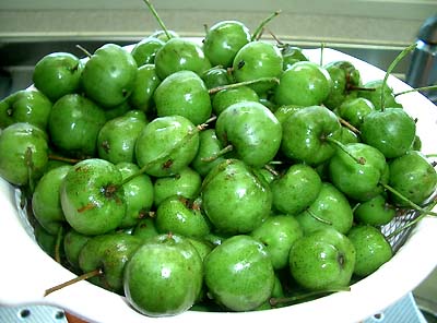 NO.330 収穫期間が長かったブルーベリー♪ (06/9/28)8月中旬過ぎから採れ始めたブルーベリーも、そろそろ終わり。 生で食べたり、ジャムにして朝食のパンに付けたりヨーグルトにかけたりと、 この1ヶ月余り市販のブルーベリージャムを買うこともありませんでした♪ この頃出かけることが多く、熟したブルーベリーの実の収穫も出来ないでいたのですが、この画像は、少しだけ雨が止んだ今日の昼間にやっと収穫した、最後?のブルーベリーです♪ジャムにしてしまえば、栄養効果も上がるとか? 最後だから果実酒も良いかと思いましたが、マタタビ酒とかサルナシ酒とかプルーン酒とか、 色々作ってしまい、もう必要ないし・・・〜(~=~;) (撮影日時9月28日 午後2時頃) ![]() 結局これも、ジャムになってしまいました(^-^;) 作りかたはプルーンジャムの時と全く同じです。 (撮影日時9月28日 午後5時頃) |