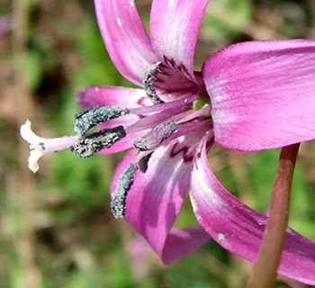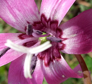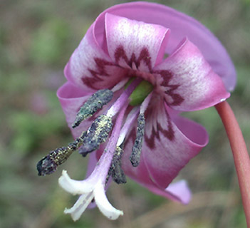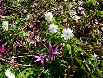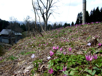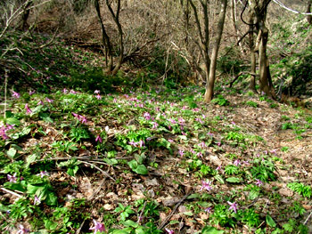 NO.391 カタクリの花の中心をマクロ撮影♪ (07/4/18)生憎この一週間、お天気も良くなく、気になっていたカタクリの花の中心模様を撮るチャンスがありませんでした。 他にも理由有り、 風邪を引いて2〜3日ダウンしてましたし・・・一週間前にこちらで約束したカタクリの花の中心模様が違うというのを紹介したく、たまたま今朝は、6日ぶりに鳥海山が顔を出し、気分もスッキリ♪ 行って来ましたよ〜〜 ここは、『サシボ』も採れる沢内の奥から見た今朝の鳥海山です♪ でも、サシボは何と既に先客に採られた後でした。 但し目的のカタクリが、同じ場所に下図のように広範囲に群生しています♪ (広範囲に写したのは、花が全く分からなかったで、分かるものだけ一部です〜^-^;) ![]() 早速、撮ったマクロ撮影です♪ 花の中心の模様の違い分かりますよね? こちらのカタクリの花弁は、チョッと盛りを過ぎてますね〜 本当はこちらのカタクリのマクロ撮影したかったのですが、撮った後でしたので今日は景色だけにしました(。 でも、場所が変わると違った模様もあった筈・・・失敗したなぁ〜 ![]() ![]() |