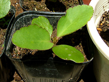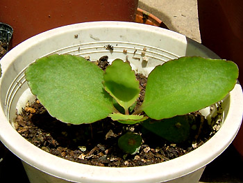 NO.416 ハッピー・ハッピーのその後 (07/6/17)今日も快晴の青空です。 朝から気温が上がり、暑い一日になりそう〜(-_-;) 空梅雨にならないよう、適当な水量が欲しいところですが、今年はどうなるのかしら??チョッとご紹介したい植物が2つあります〜(^-^;) 昨年、義妹から頂いた「ハッピー・ハッピー」の葉っぱですが、芽は出たものの、冬季間は全く成長が止まってしまった感じでした(^-^;) 春に小さい芽を植え替えたら、今は、ご覧のように↓5センチ位の葉っぱに成長しています♪ 7本しか育ててませんが、いづれ、どんな花が咲くのか楽しみです〜♪ ![]() ![]() ![]() それと、もうひとつはマンゴーの種を植えた(4/23) のですが、その後、なかなか芽を出さず、調べたら腐ってました(-_-;) 又、懲りもせず1ケ月後、食べた後の種を1個だけ植えたら、何と赤っぽい葉が2本も出ましたよ〜♪ 今は7センチ位ですが、この夏どのくらい成長するのか楽しみ〜(^^♪ 面白いと共感された方、真似してみます?(^-^;) |