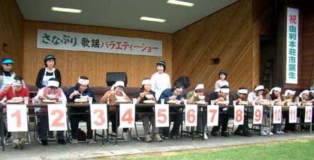 ところで?十年前の記憶というのは、私の子供の頃のことです。昔は運動会といったら、親が海苔巻きやお稲荷さん等の色々なご馳走をたくさん作って、子供達を含めて部落の人たち毎に固まりお弁当を食べたものでした。 ワイワイガヤガヤ、それはそれは、とっても楽しい思い出です♪ところが、この田舎町では今でも親子一緒で集落ごとに分かれてお弁当を食べます。 おかずを分け合い、ワイワイガヤガヤ同じです。 私の息子の小学校時代は、運動会と言っても東京の町田市だったので、子供達は給食で教室に入り別行動 (><;)。 何とも寂しい昼食タイムでした(~=~;) 運動会で私の尊敬している地元の若いK先生(お医者さん)とお話する機会があり、健康の特効薬は笑って暮らすのが一番♪ 何が起きても、気持の持ち方で元気になれるし、癌があっても(癌の芽は誰でも持っているそうです)育たないし、特効薬だから死滅する可能性もありえるそうです(^_-)-☆ 怒りっぽい方、悩みやすい方、気をつけましょう〜♪(私?分りませ〜ん♪) NO.192 クールビズ(COOL BIZ)♪ (05/6/1)今日から学校も官庁も会社も衣替えですね。 政府はこの夏から、大臣をはじめ、皆で新しい服装クールビズ(クールビジネス)を実施するそうです。 「上着も無し、ネクタイも無しで良いが、かっこよく、涼しく、礼節を保てるスタイルを!」と提唱していました。 そして冷房は28度に設定してくださいとのこと!。昨年は異常気象で、何と40度近い猛暑の日数記録が出ましたが、今年はどうなんでしょう〜? 東北はあまり実感が無かったのですが、エアコンの設定温度を28度にすることで電力消費も減るし二酸化炭素も減り、地球温暖化対策には必須条件だと思いますが、守られていなかったんですよね〜(^-^;) 冷房の効き過ぎは、今更いうまでも無く、女性にとっては冷え性を悪化させる“悪の根源”なのに・・・・(>_<) 人間の体って自然に任せるのが一番! 気温の変化は体のコンピューターが察知して暑ければ汗を出したり、寒ければ鳥肌になって体温が外に逃げないように体を守ってくれますからね(^o^)丿 汗を掻かない生活習慣をしていると、体のコンピューターが狂うそうですよ(^_-)-☆ もう、すでに狂って不健康の原因になっている方も多いそうです。 ですから、今年もエアコンをかけるときは、なるべく高めに設定し、汗を掻く生活がしたいですよね〜♪ とは言っても、これは何処のご家庭でも、ご家族の協力が必要なんですよね〜(^_-)-☆ 1人1人の意識改革が必要と大声で言いたい!(^-^;)「地球環境と健康にご協力を〜♪」 NO.193 新緑まつりで大笑い♪ (05/6/5)毎年開催されていた鳥海町の「新緑まつり」が、今年も晴れ間の見える本日開催されました。 今年は1市7町が3月22日から「由利本荘市」となったので、“祝 由利本荘市誕生 2005鳥海「新緑まつり」”となり、開会挨拶も市長さんですので、スケールが大きくなった気がします(^-^;)。そこで、今年の新緑まつりのイベントの一部ですが、少しご紹介してみたいと思います♪ (PRもチョッピリ兼ねています〜〜(^_-)-☆) 左下の画像は、我が町特産の「百宅(ももやけ)そば早喰い大会」の様子です♪ 男女別に15人で競争し、全員参加賞と3位まではトロフィと副賞商品がゲット出来ます♪ ![]() ![]() 角館市や秋田市など県内あちこちから参加されていました。老若男女の戦いでしたが、男性は若い方がダントツ1位でした。 女性の中には、私もいます(^_-)-☆(わかりますか〜?^-^;)。 誘われたとは言え、恥さらしかな?・・と思いつつ、気がつけば何と準優勝でした〜〜(@@;) 信じられません(^-^;) ところで、私のメインは、やはりお笑いバラエティーショーですね〜(^_-)-☆ 今年は「エンジェルひばり(ものまね)ショー」でした♪ ものまねのひばりさんはオカマ(男)です(^_-)-☆ 皆と笑いこけているうちに、シワが?〜〜(^-^;) でも、笑いは健康の特効薬ですからね〜♪ ![]() ![]() 又、地元出身歌手の「藤かおり歌謡ショー」(左下画像)や、「高瀬まみ歌謡ショー」(右下画像(山瀬まみではありません(^_-)-☆)もあり、一日ががりで楽しんできました♪ ![]() ![]() ![]() 最後の締めくくりで、来客者期待の「さなぶり大抽選会」が、今年もありました! 豪華商品盛りだくさんにドキドキ、ワクワク♪ 最後まで待って・・残念(^-^;)。 沢山の当選者さん! おめっとうさ〜〜ん♪(~=~;) 以上、地元情報でした〜(^_-)-☆ NO.194 日本サッカー・W杯一番乗り\(^-^)/ (05/6/9)サッカー・アジア最終予選がバンコクで北朝鮮と昨夜7時半から行われましたが、後半28分に柳沢が、44分に大黒が続けて得点! いや〜嬉しかったです! 感動〜!感動〜♪ 特に、2点目の大黒が得点したの時のジーコ監督の喜び方が凄かったですね〜(^_-)-☆あの嬉しそうな顔は、私の脳裏に焼きつき、暫く消えそうにありません(^-^;) ところでジーコ監督といえば、2002年就任会見で、「攻撃的なサッカー、楽しいサッカー、喜びを与えられるサッカーを目差す」と語ったそうです。 そして、新監督のキーワ