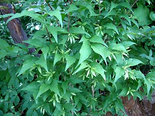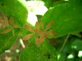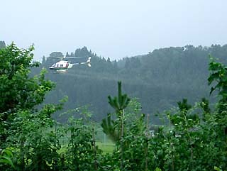 ラジオ体操に参加してみては如何かしら? スッキリしますよ!(^_-)-☆ この画像は近所の子供たち。学童7人ですが、この日はたまたまお休みの子がいました(^-^;)。( 撮影日 8/6 ) NO.207 農薬ヘリ(--;) (05/8/12)帰省ラッシュの始まったお盆がやって来ましたね♪。 近所の婆ちゃんのところにも、娘さん一家が18時間の長距離運転で岐阜県から帰省♪。 目尻の下がった老夫婦が微笑ましい限りです♪ 私の母は95歳!(@@;) ラッシュが終わったら、後で顔を見に行きます。 待っててね(^_-)-☆毎年行われている農薬ヘリコプターが、今朝の早朝小雨降る中、我が家の上空を飛んでいました。 家庭菜園をしていると、雨の日の投薬は避けるようにしていますが、 、今日の農薬には接着剤でもたっぷり入っているのかしら?(^-^;) 兼業農家、農家の高齢化で、農薬ヘリに対して理解しなければという気持もありますが、複雑(--;)。 そう言いながらも、近くまで来るヘリコプターを見ると、子供のようにチョッと興奮♪ つい、デジカメに収めてしまいました(^-^;)。 悪天候なのでぼやけてしまいましたが、何んにでも興奮してしまうのも、きんぎょの健康術かしら?(^_-)-☆(^-^;) ![]() ![]() NO.208 山歩き♪ (05/8/16)雨の多いお盆でしたね〜。 久しぶりに青空になった今日のお天気に誘われ、健脚づくりを兼ねて地元沢内の奥を2時間程歩いて来ました♪ 快晴なのに入道雲がもくもくと現れ、早朝見えていた鳥海山はすっかり隠れ、残念でした(^-^;)。沢内を選んだのは、 ツクバネウツギ の様子を見たかったのです。 花が咲いていた時とその後の変化が羽子板の「羽根突きの羽根」になっているかどうか? ところが、左下の画像「あれ〜? 羽根(がく片)はあるけど球(実)が無い。 やっぱり遅かったのね〜〜~=~;)」 というドジでした(^-^;)。 ![]() ![]() でも、初めて見た花を発見! 何の花??(右上画像) 土からいきなり顔出して咲いているなんて・・・。 不思議な花・・・。 今のところ解かりません(^-^;)。 ![]() ![]() 気になる植物を見つけました! いかにも羽子板の羽根に似ていますが、ツクバネウツギではありません(^_-)-☆ 本当に何だか解かりません(^-^;) 全体と一部アップした画像を載せてみましたが、解かる方は教えてくださいませ〜(^-^;) 体力、健脚づくり目標の山歩きも、デジカメ片手に新しい発見は、気分もウキウキ〜♪ でも、もっと勉強しなくっちゃ〜(^_-)-☆ 追伸:横浜のY様より、情報を頂きました♪ 上の画像の「何の花?」が分りました! 「ナンバンギセル」とのことで漢字で書くと「南蛮煙管」と書き、何となく、「キセル」の形に似ているところから名前がついたようです。 ススキやミョウガに寄生して、その養分を”横取り”するらしいですよ(^_-)-☆ 確かにススキの根元に生えていました(^-^;)。Y様、有難う御座いました♪(05/8/21) NO.209 サンスベリアが咲いた♪ (05/8/20)観葉植物のサンスベリアが「マイナスイオン放出植物」として一時ブームとなった時期に、我が家も小さい物を購入。 熱帯アフリカ原産のリュウゼツラン科サンスベリア属。別名「トラノオ」というそうですが、あれから2〜3年たったかな?